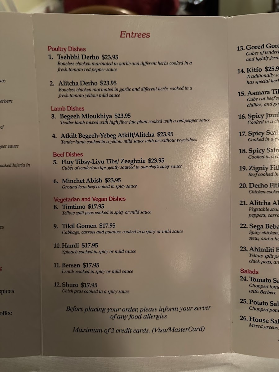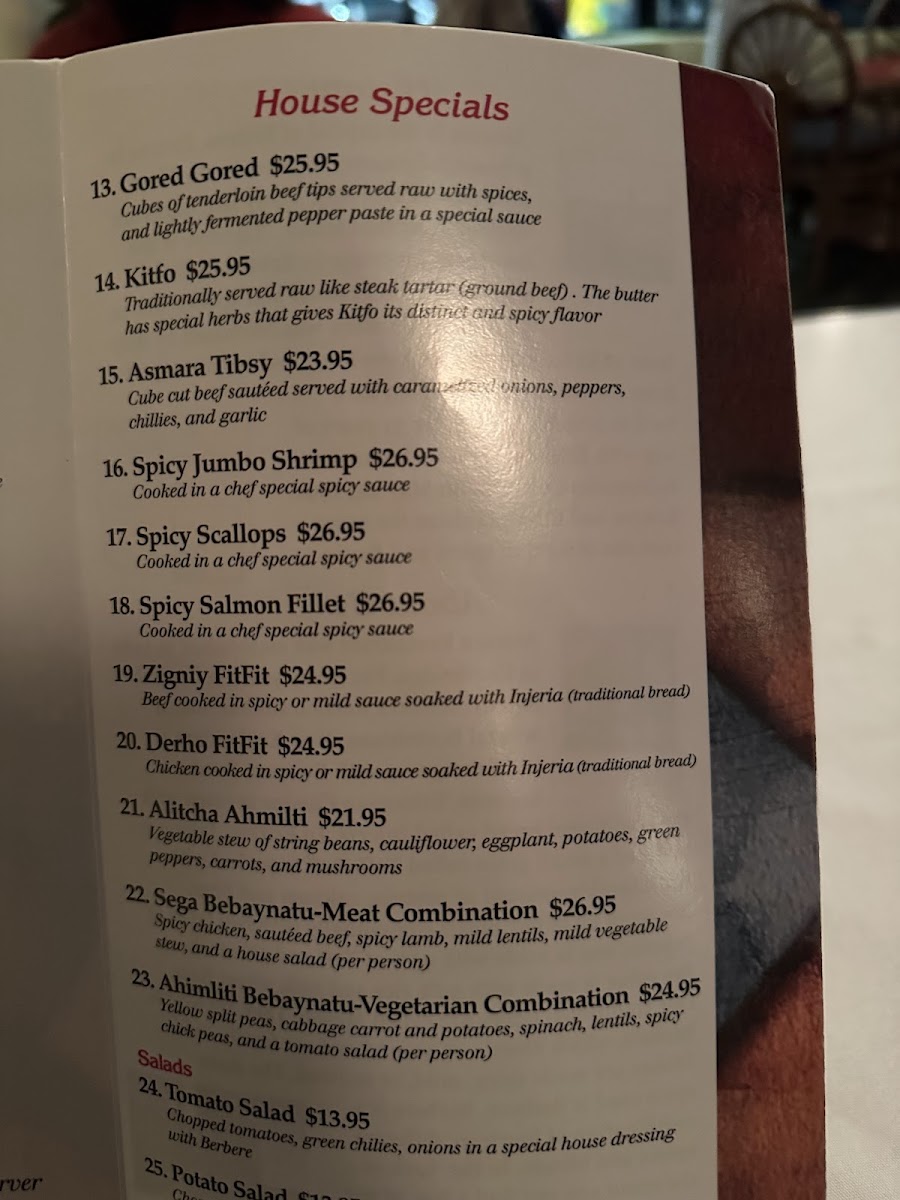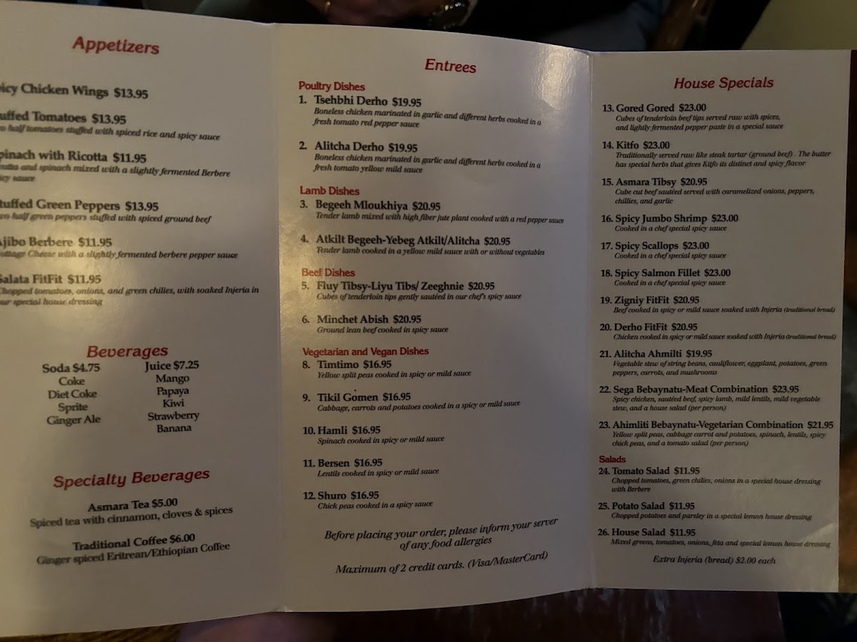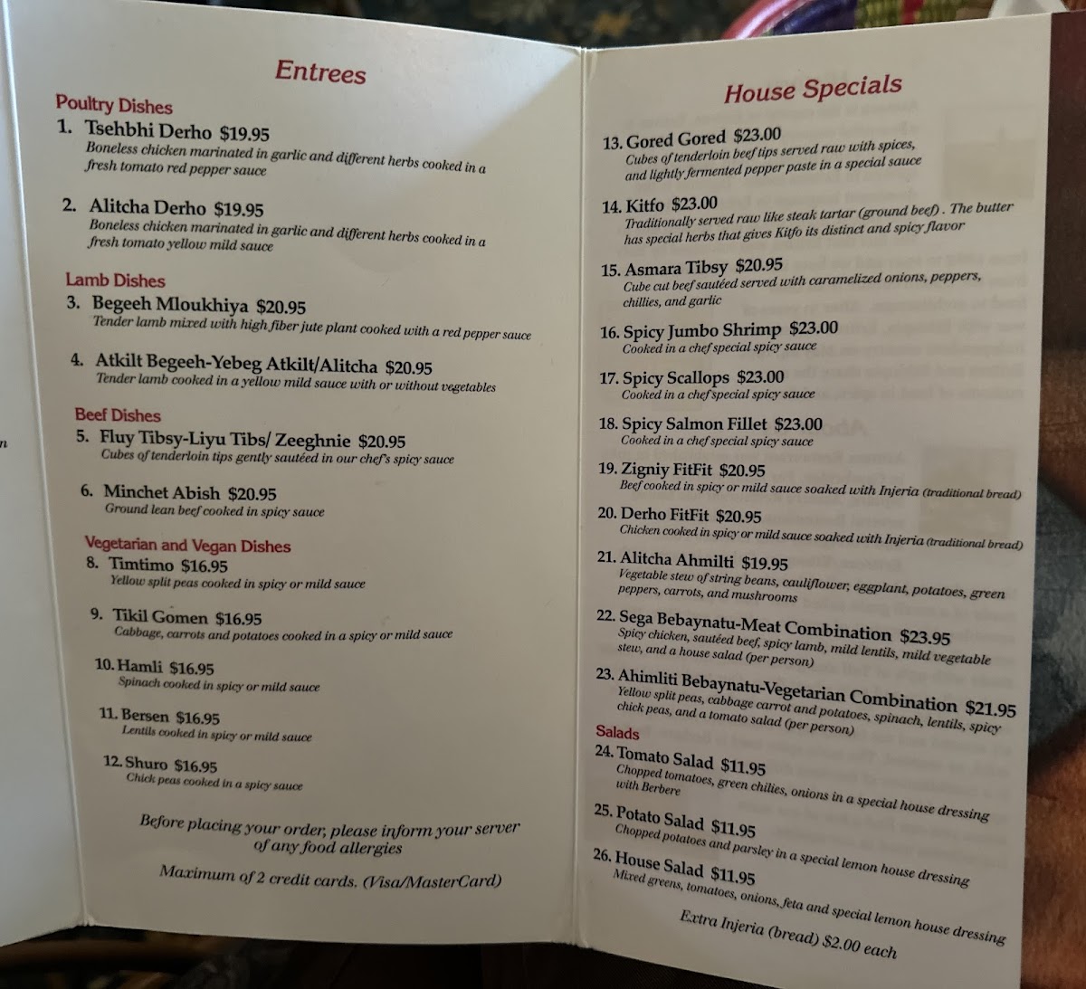 Our Traditional Bread. Injeria comes with all meals. If you like more, it’s served per piece. One piece is a circular, medium plate size.